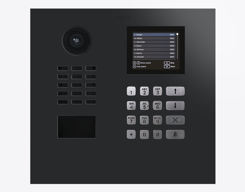 The efficient Doorbird D21DKH 423888982, IP VIDEO DOOR STATION. Graphite black (Raven Polar), powder-coated, semi-gloss is for multi-tenant residences and buildings with up to 500 units.
