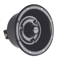 The efficient Bogen FMH15T Flange-Mounted Horn is a reentrant type loudspeaker with excellent voice intelligibility and efficiency. Weatherproof design for indoor or outdoor use. Vandal-resistant, for applications in hostile environments. All-metal construction with black enamel finish. 15 watts max at 70V or 25V. Weather-sealed variable-tap impedance selector switch.