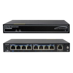 Speco 9-port switch, 8-port PoE 802.3af/at 10/100BaseT, Stock# POE8SW9