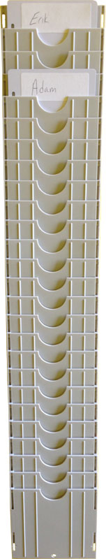 The Compumatic 25 pocket expandable time card holder that is expandable (detachable and modular) Time Card Rack 25 card capacity, Fits cards up to 3.5 inches wide and at least 7 inches long