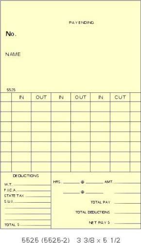 The Compumatic 5525 (1000 per box) Time Catds Weekly Cross-Shift Time Cards 3-3/8" W x 5-1/2" L with printed on one side, on the back.