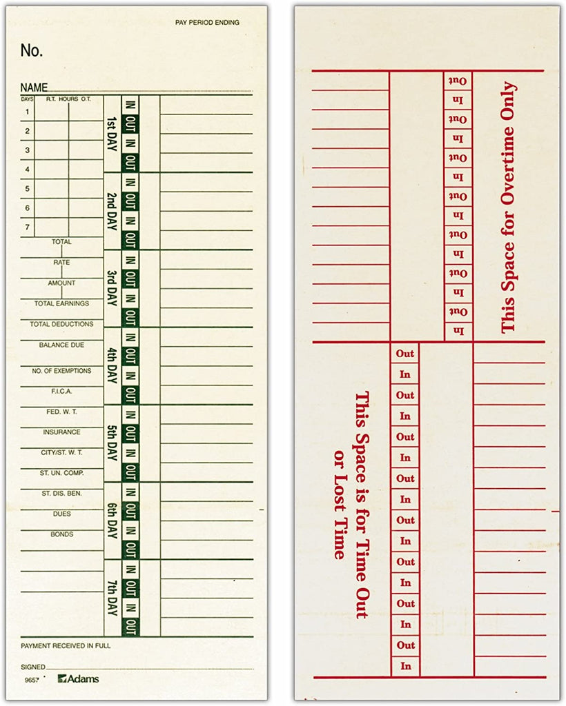The Compumatic Adams Time Cards 9657-200 (200 per pack).