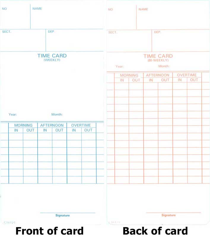 The Compumatic Weekly/Bi-Weekly time cards (250 per box) have a form number CTR121, compatible with many top load time recorders from Amano, Acroprint, Compumatic, and others...