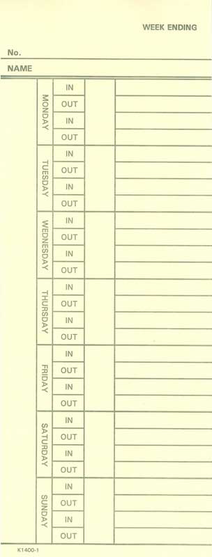 The Compumatic Weekly side-print time cards (1,000 per box), have a form number K-1400, compatible with all standard front load time stamp clocks from Amano, Acroprint, Compumatic, Icon, Lathem, Simplex, and others...