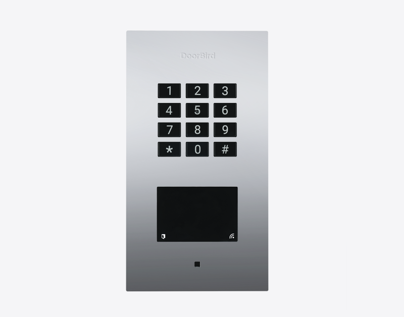 The high-performance Doorbird A1121-F 423893665, FLUSH-MOUNT IP ACCESS CONTROL DEVICE, Chrome-finish as PVD coating, stainless steel V4A, high-gloss polished is a multi-technology access control system and stand-alone solution for back and side doors, garages, storage and packing rooms, and bicycle and machine rooms.