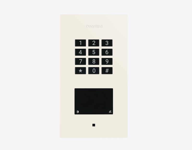 The durable Doorbird A1121-F 423894112, FLUSH-MOUNT IP ACCESS CONTROL DEVICE, RAL 9010, stainless steel, powder-coated, semi-gloss is a multi-technology access control system and stand-alone solution for back and side doors, garages, storage and packing rooms, bicycle, and machine rooms.