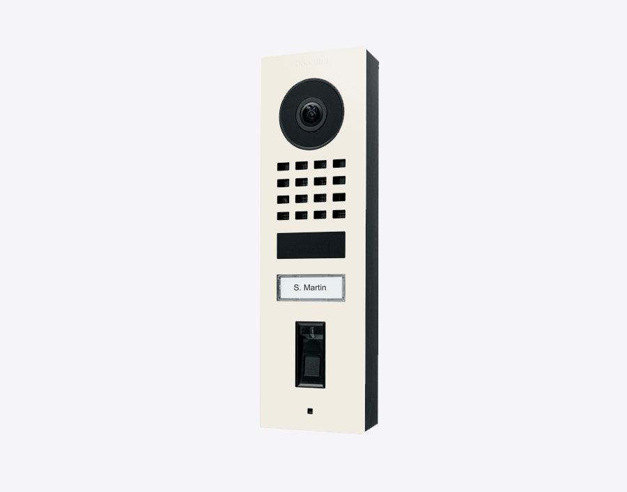 The durable Doorbird 423894860 D1101FV-S, FINGERPRINT 50 SURFACE-MOUNT IP VIDEO DOOR STATION, RAL 9010, stainless steel, powder-coated, semi-gloss, for single-family homes and businesses with 1 unit, and, 1 call button.