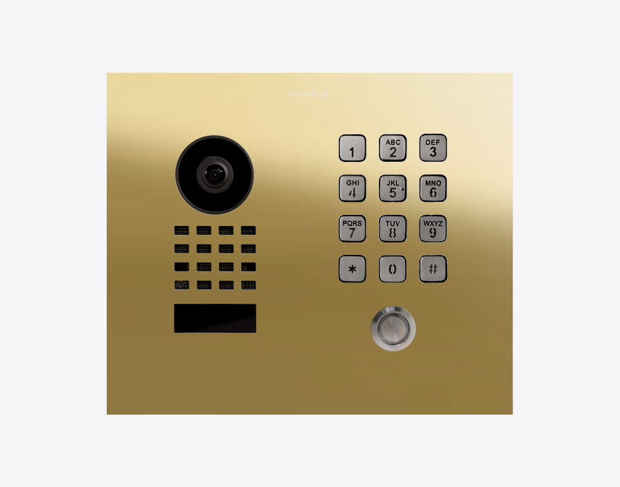 Doorbird D1101KH-C-F, CLASSIC FLUSH-MOUNT IP VIDEO DOOR STATION, Brass-finish as PVD coating, stainless steel V4A, high-gloss polished, Part# 423879829