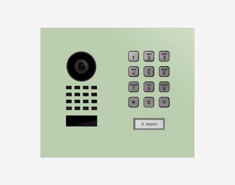 Doorbird D1101KH-M-F, MODERN FLUSH-MOUNT IP VIDEO DOOR STATION, RAL 6019, stainless steel, powder-coated, semi-gloss, Part# 423880122