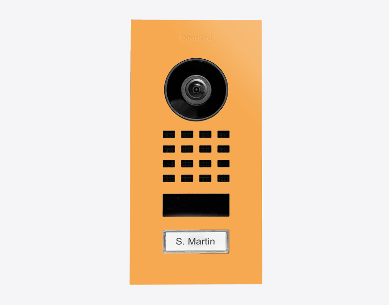 The quality Doorbird 423878693 D1101V-F, FLUSH-MOUNT IP VIDEO DOOR STATION, RAL 1017, stainless steel, powder-coated, semi-gloss, is for single-family homes and businesses with 1 unit, and 1 call button.