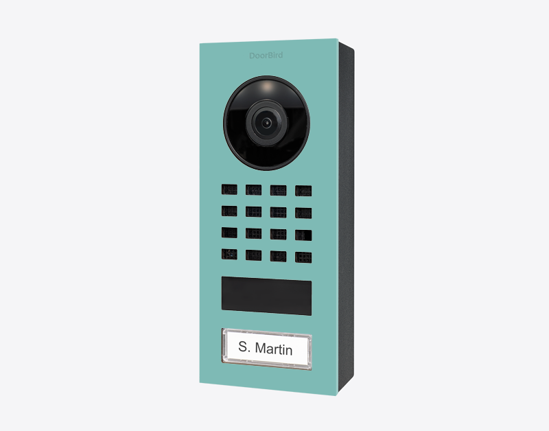 The quality Doorbird D1101V-S, SURFACE-MOUNT IP VIDEO DOOR STATION, RAL 6027, stainless steel, powder-coated, semi-gloss is a single-family home and business with 1 unit, and 1 call button.