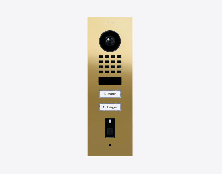 Doorbird D1102FV-F, FINGERPRINT 50 FLUSH-MOUNT IP VIDEO DOOR STATION, Brass-finish as PVD coating, stainless steel V4A, high-gloss polished, Part# 423895249