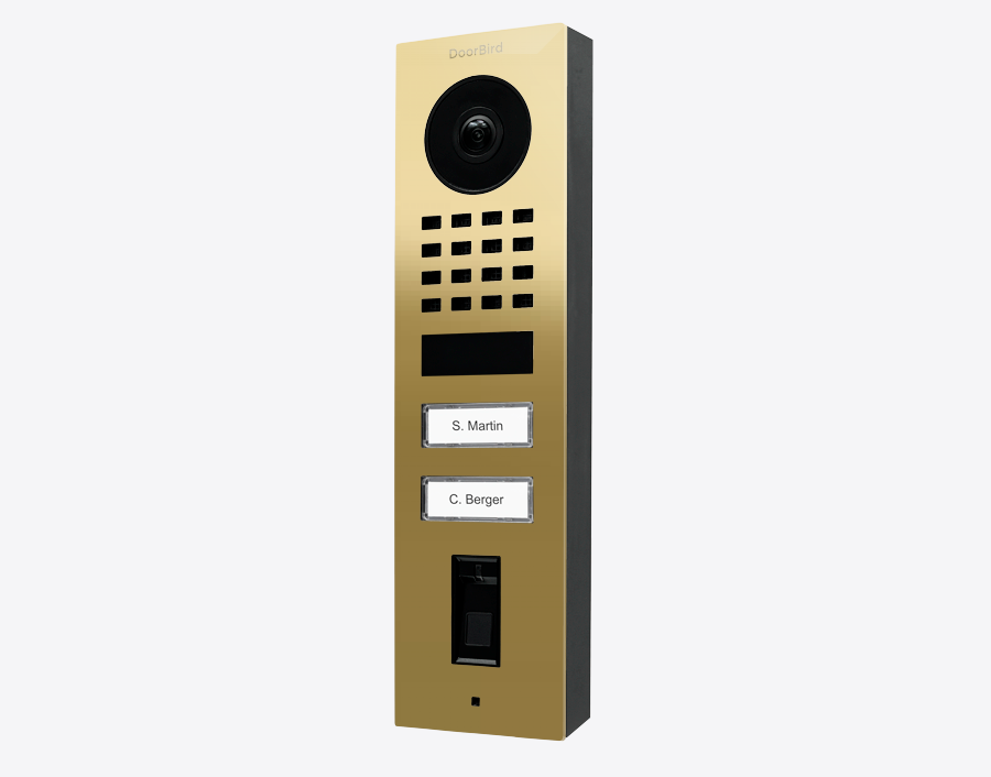 Doorbird D1102FV-S, FINGERPRINT 50 SURFACE-MOUNT IP VIDEO DOOR STATION, Brass-finish as PVD coating, stainless steel V4A, high-gloss polished, Part# 423895065