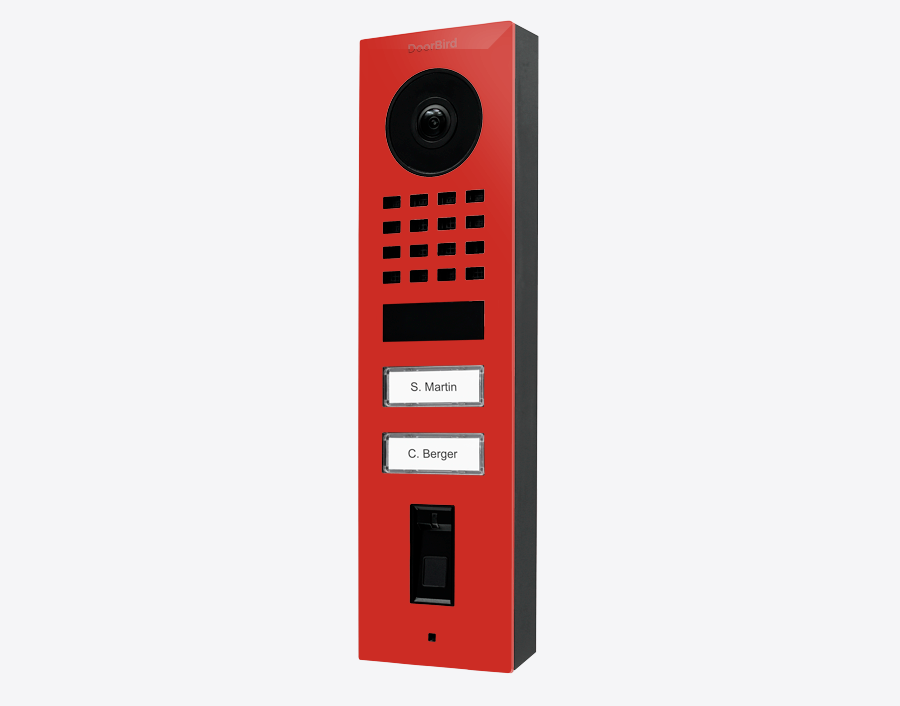 Doorbird D1102FV-S, FINGERPRINT 50 SURFACE-MOUNT IP VIDEO DOOR STATION, RAL 3028, stainless steel, powder-coated, semi-gloss, Part# 423895089