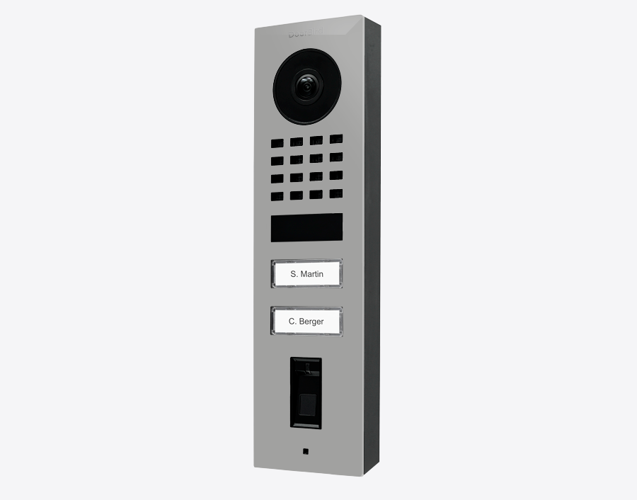 The durable Doorbird D1102FV-S 423895218, FINGERPRINT 50 SURFACE-MOUNT IP VIDEO DOOR STATION, RAL 9006, stainless steel, powder-coated, semi-gloss, is for multi-tenant buildings and businesses with 2 units, and 2 call buttons.