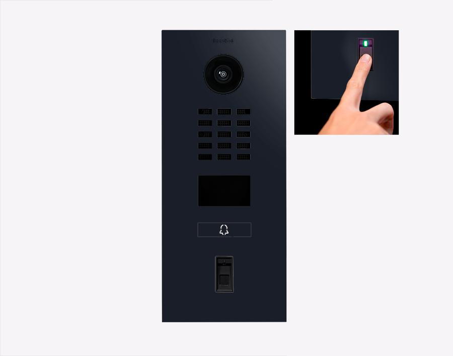 The reliable Doorbird D2101FV-FP50 423896369, FINGERPRINT 50 IP VIDEO DOOR STATION, RAL 5004, stainless steel, powder-coated, semi-gloss is for single-family homes and businesses with 1 unit, and 1 call button.