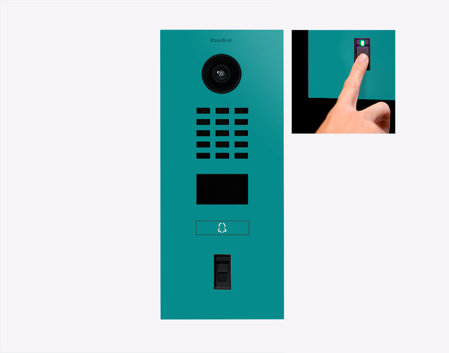Doorbird D2101FV-FP50, FINGERPRINT 50 IP VIDEO DOOR STATION, RAL 5018, stainless steel, powder-coated, semi-gloss, Part# 423896390