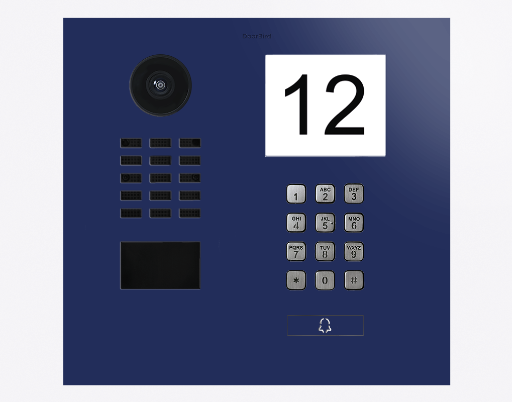 The high-performance Doorbird D2101IKH 423883574, IP VIDEO DOOR STATION, RAL 5022, stainless steel, powder-coated, semi-gloss is for single-family homes and businesses with 1 unit, and 1 call button.