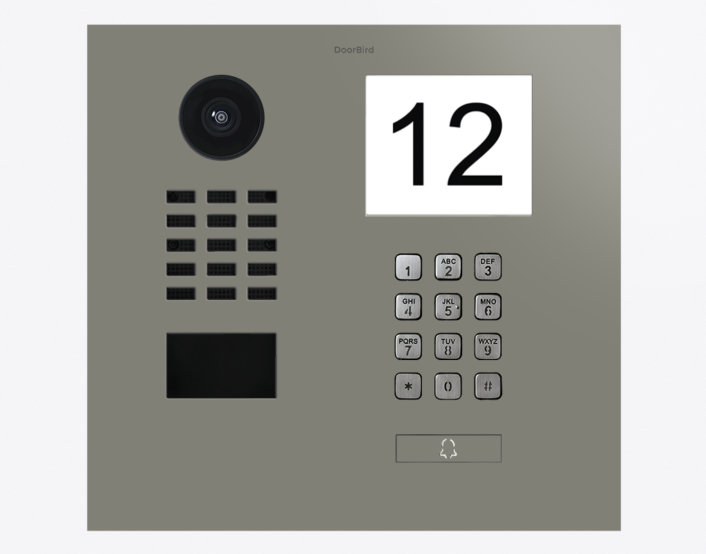 The high-performance Doorbird D2101IKH 423883680, IP VIDEO DOOR STATION, RAL 7023, stainless steel, powder-coated, semi-gloss is for single-family homes and businesses with 1 unit, and 1 call button.