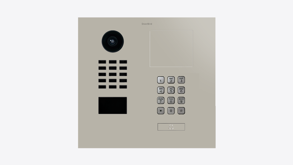 The high-performance Doorbird D2101KH 423884212, IP VIDEO DOOR STATION, RAL 7044, stainless steel, powder-coated, semi-gloss is for single-family homes and businesses with 1 unit, and 1 call button.