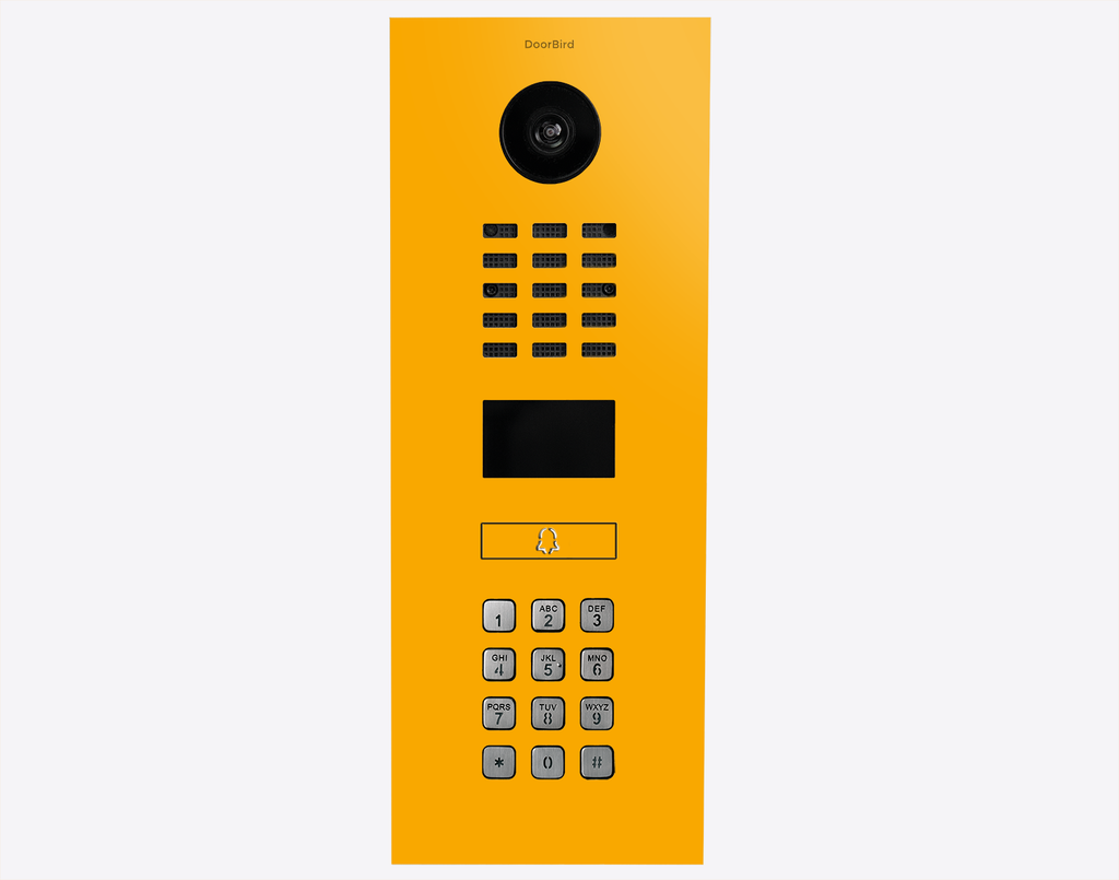 The advanced Doorbird D2101KV 423884397, IP VIDEO DOOR STATION, RAL 1003, stainless steel, powder-coated, semi-gloss is for single-family homes and businesses with 1 unit, and 1 call button.