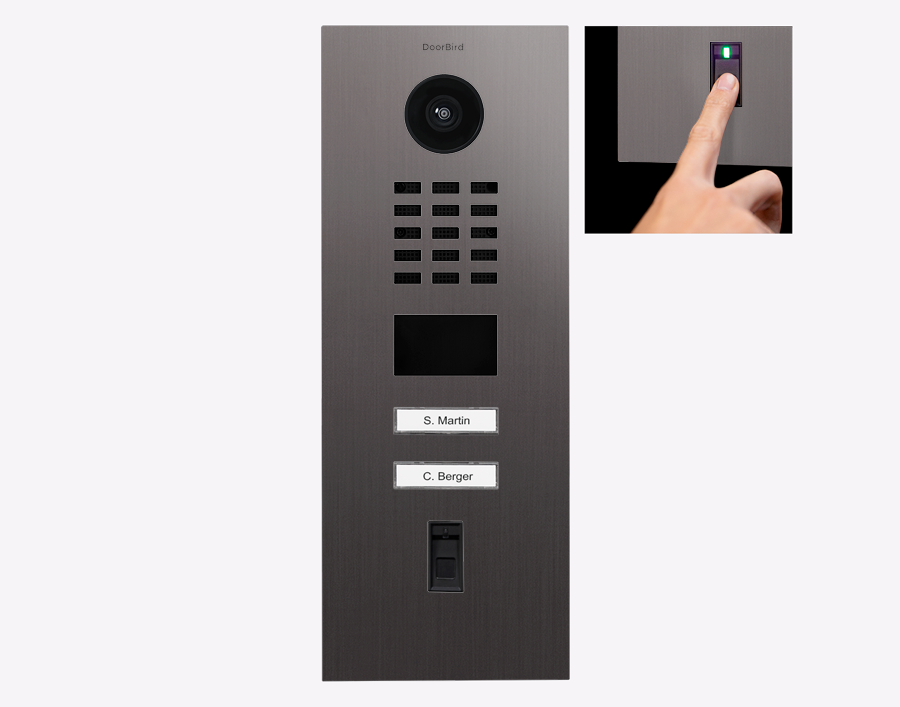 Doorbird D2102FV-FP50, FINGERPRINT 50 IP VIDEO DOOR STATION, Titanium-finish as PVD coating, stainless steel, brushed, Part# 423872561