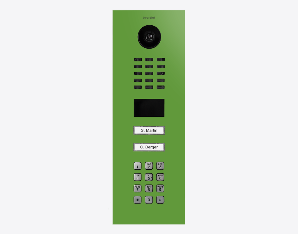 Doorbird D2102KV, IP VIDEO DOOR STATION, RAL 6018, stainless steel, powder-coated, semi-gloss, Part# 423891371
