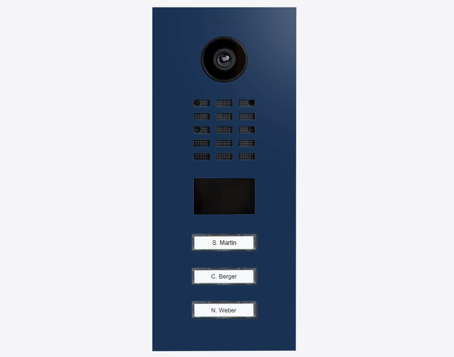The quality Doorbird D2103V 423886100, IP VIDEO DOOR STATION, RAL 5013, stainless steel, powder-coated, semi-gloss, is for multi-tenant buildings and businesses with 3 units, and 3 call buttons.