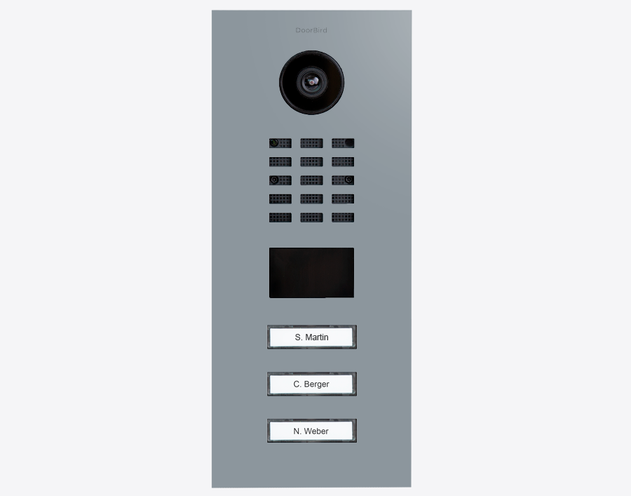 The durable Doorbird D2103V 423886186, IP VIDEO DOOR STATION, RAL 7001, stainless steel, powder-coated, semi-gloss, is for multi-tenant buildings and businesses with 3 units, and 3 call buttons.