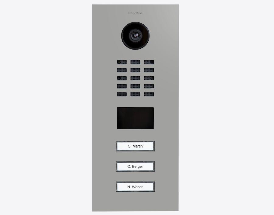 The durable Doorbird D2103V 423886322, IP VIDEO DOOR STATION, RAL 9006, stainless steel, powder-coated, semi-gloss is for multi-tenant buildings and businesses with 3 units, and  3 call buttons