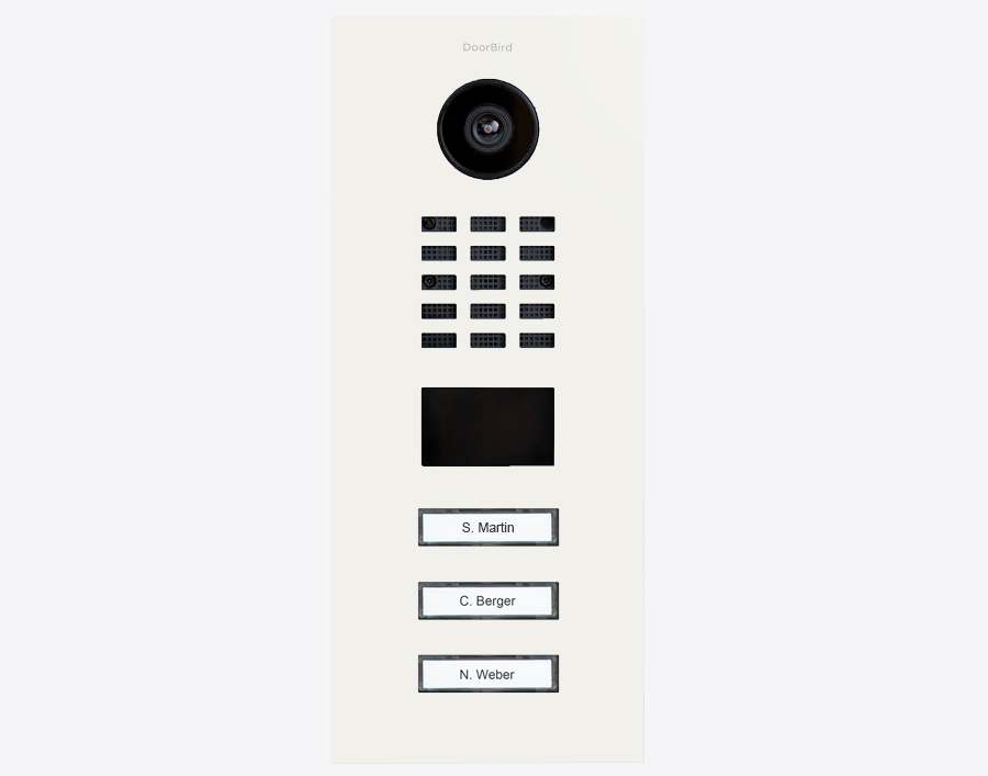 The durable Doorbird D2103V 423886353, IP VIDEO DOOR STATION, RAL 9016, stainless steel, powder-coated, semi-gloss, is for multi-tenant buildings and businesses with 3 units, and 3 call buttons.