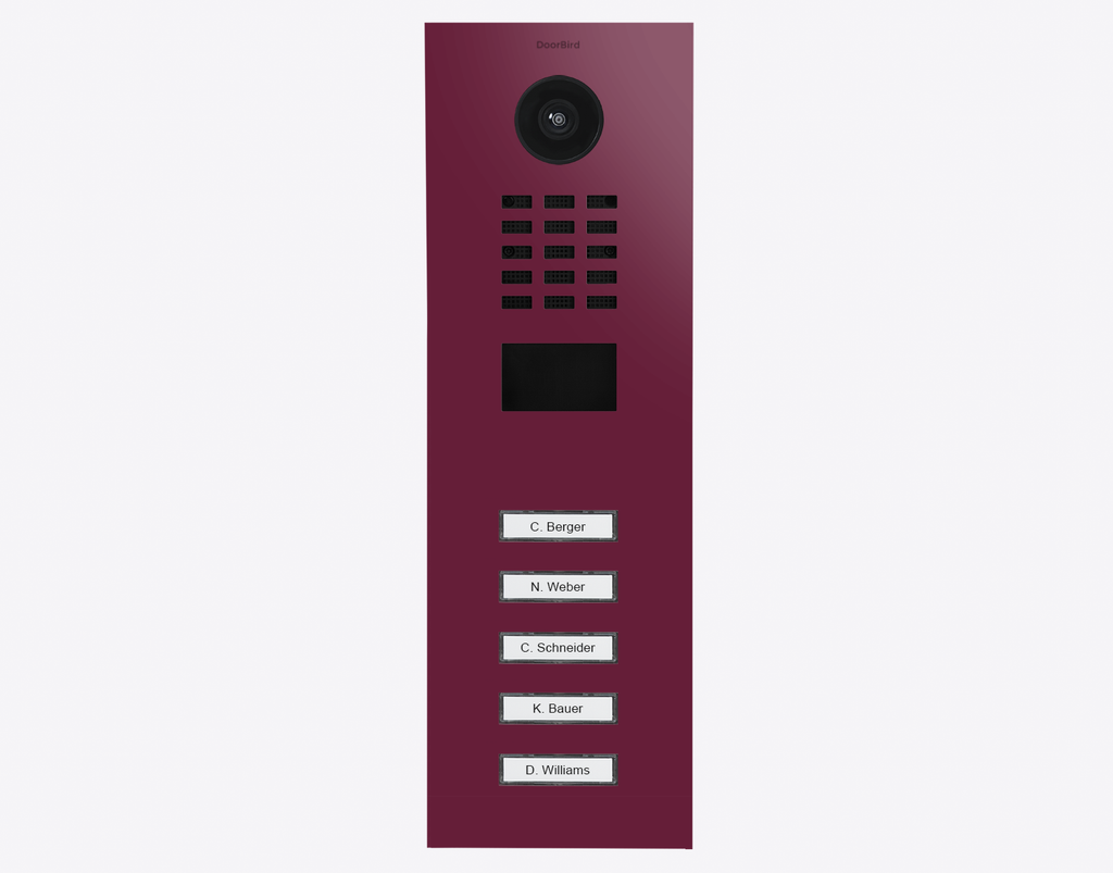 The efficient Doorbird D2105V 423887565, RAL 4004, IP VIDEO DOOR STATION, stainless steel, powder-coated, semi-gloss is for multi-tenant buildings and businesses with 5 units, and 5 call buttons.