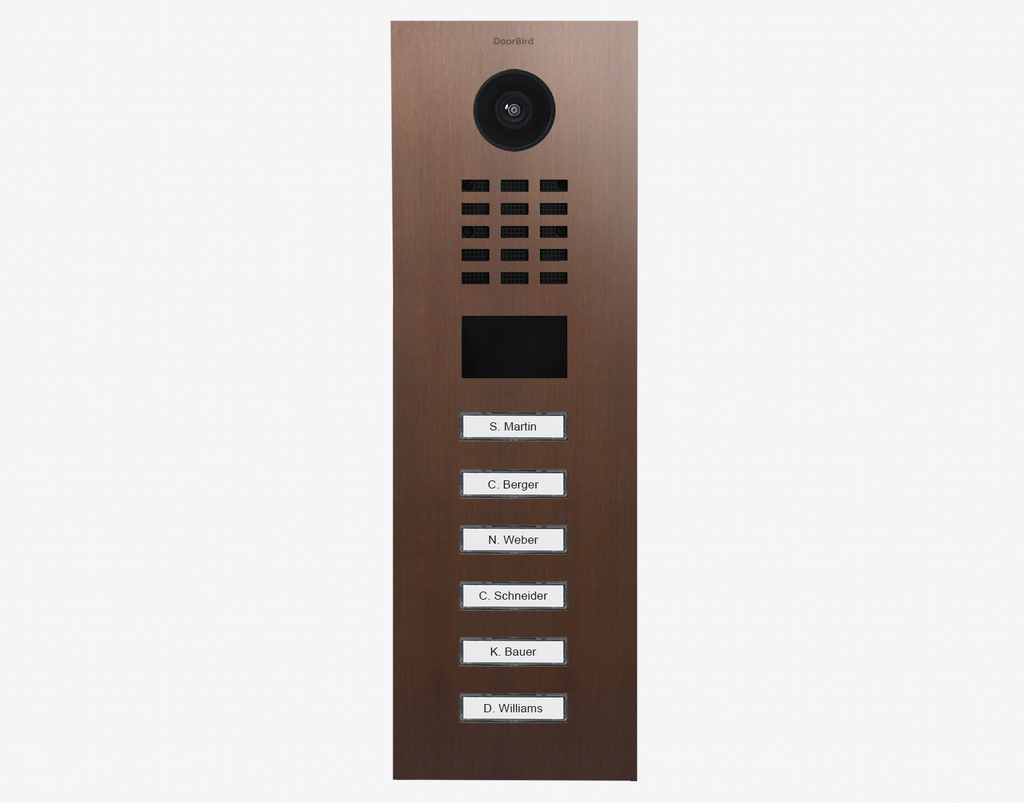 The durable Doorbird D2106V 423886872, IP VIDEO DOOR STATION, Architectural bronze is for multi-tenant buildings and businesses with 6 units, and 6 call buttons.