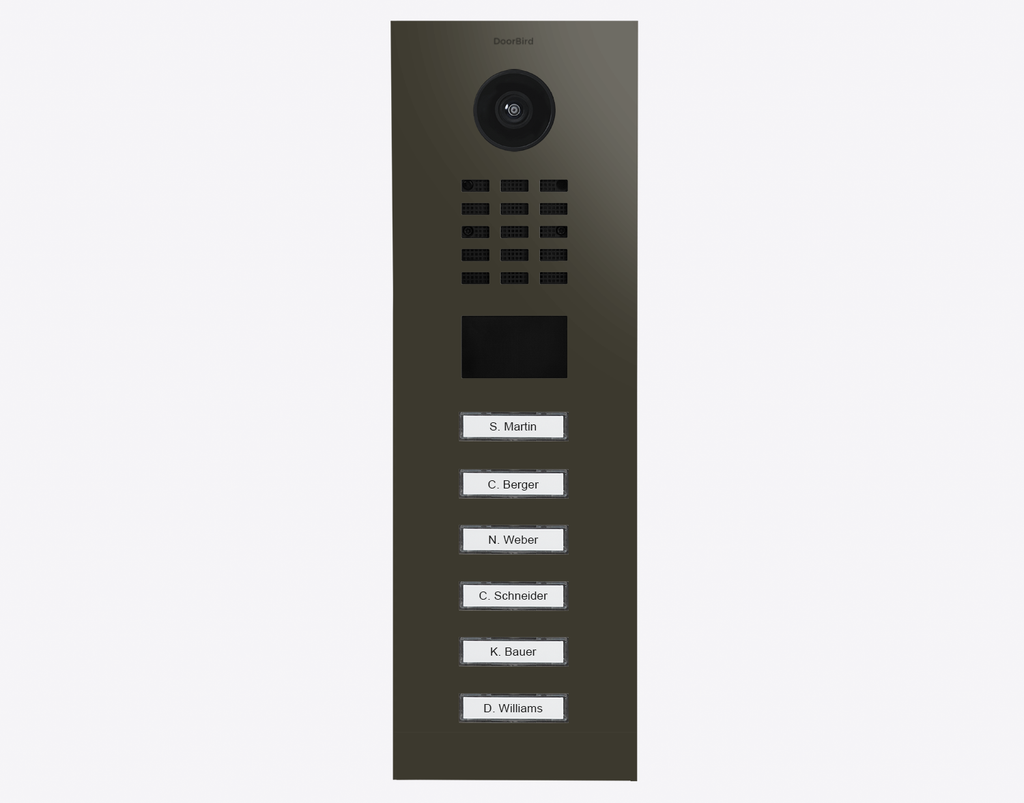 The quality Doorbird D2106V 423887169, IP VIDEO DOOR STATION, RAL 6006, stainless steel, powder-coated, semi-gloss is for multi-tenant buildings and businesses with 6 units, and 6 call buttons.