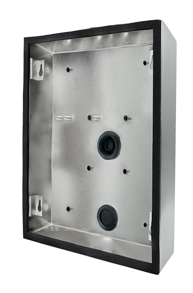 The Surface-mounting housing (backbox) for DoorBird D2107V, D2108V and D2110V door panels made from stainless steel V2A. Available in 2 variants.