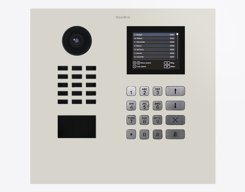The high-performance Doorbird D21DKH 423888937, IP VIDEO DOOR STATION, RAL 9002, stainless steel, powder-coated, semi-gloss is for multi-tenant residences and buildings with up to 500 units.
