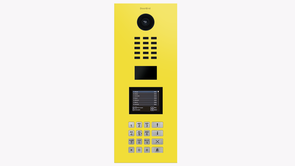 The durable Doorbird D21DKV 423888029, IP VIDEO DOOR STATION, RAL 1016, stainless steel, powder-coated, semi-gloss is for multi-tenant residences and buildings with up to 500 units.