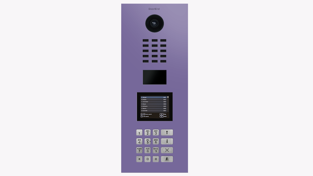 The efficient Doorbird D21DKV 423888128, IP VIDEO DOOR STATION, RAL 4005, stainless steel, powder-coated, semi-gloss is for multi-tenant residences and buildings with up to 500 units.