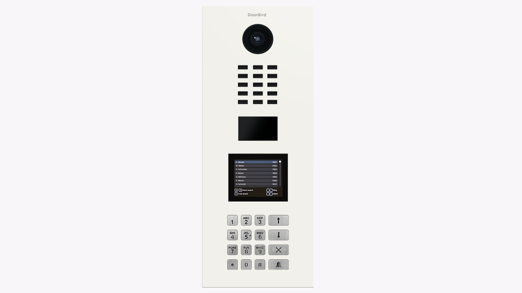The efficient Doorbird D21DKV 423888432, IP VIDEO DOOR STATION, RAL 9016, stainless steel, powder-coated, semi-gloss is for multi-tenant residences and buildings with up to 500 units.