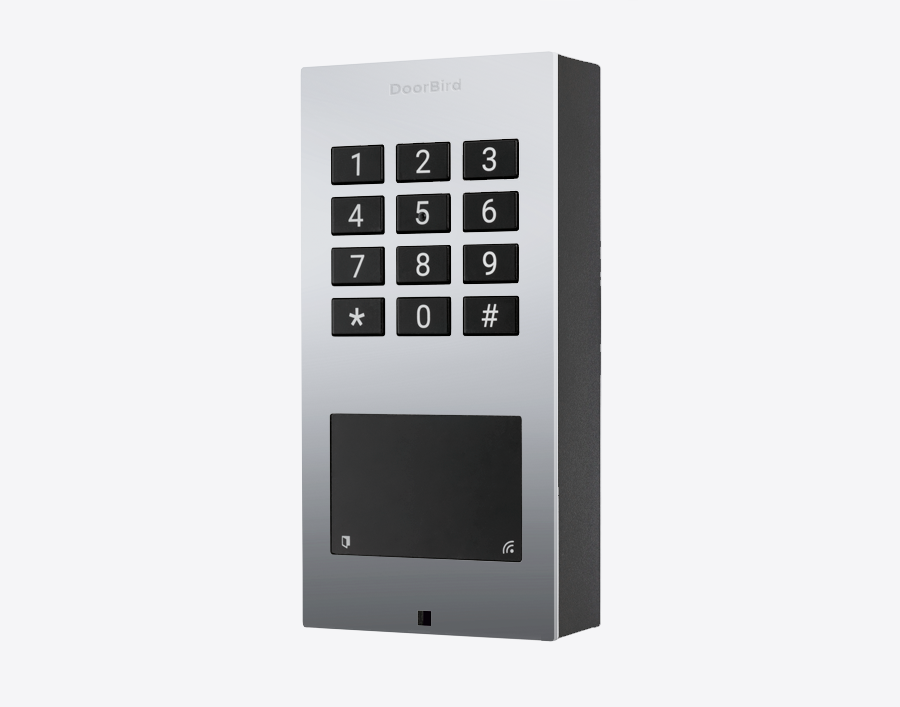 The versatile Doorbirrd A1121-S 423893153, SURFACE-MOUNT IP ACCESS CONTROL DEVICE, Chrome-finish as PVD coating, stainless steel V4A, high-gloss polished is a multi-technology access control system and stand-alone solution for back and side doors, garages, storage and packing rooms, bicycle, and machine rooms.
