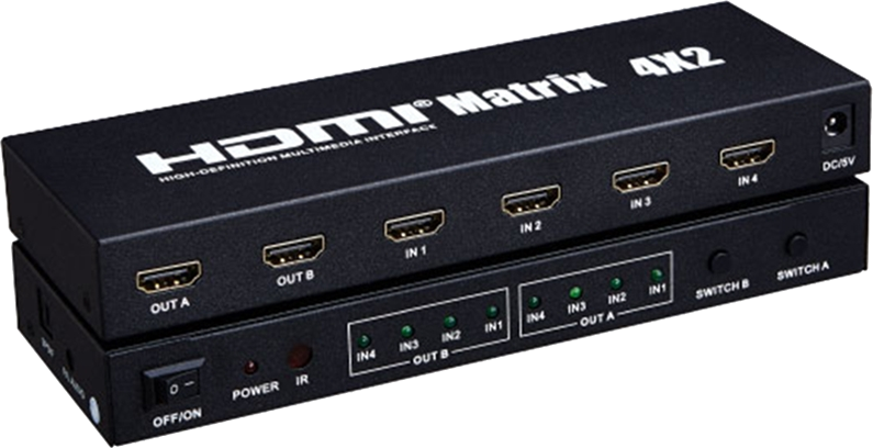 ENS HDMI Switcher, 4 Input, 2 Output, remote included, Part# ST-HDSW42